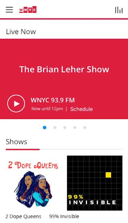 The WNYC app also includes popular podcasts like This American Life, Money Talking, On Being, Fresh Air, and Ask Me Another.