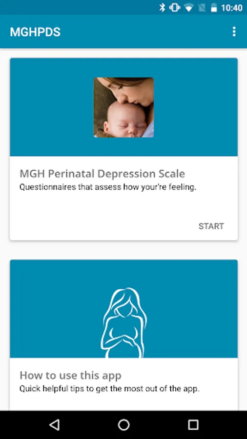 The MGH Perinatal Depression Scale (MGHPDS) is a free tool that, with your help, will refine how women around the world are screened for postpartum depression. This app includes questionnaires about mood, anxiety, sleep, and stress at important time points during pregnancy and the postpartum period. These questionnaires will give a better sense of how you are feeling during this important time.