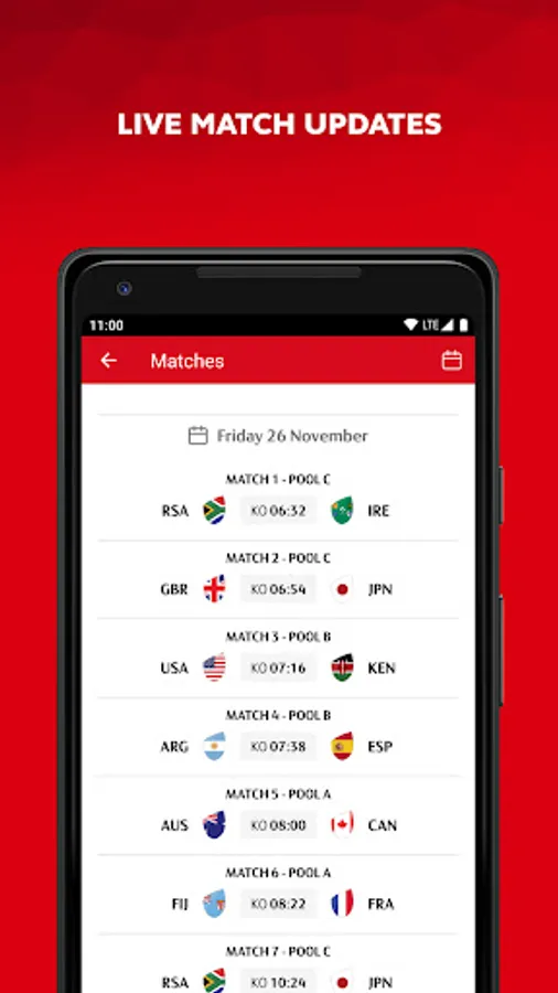 • Personalise your experience to receive match notifications for your favourite team