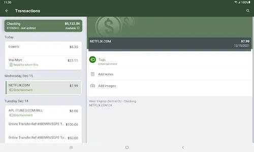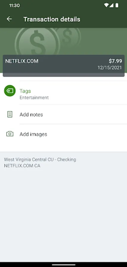 - Keep your transactions organized by allowing you to add tags, notes and photos of receipts and checks.