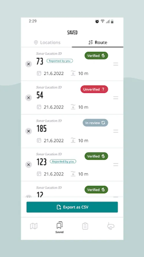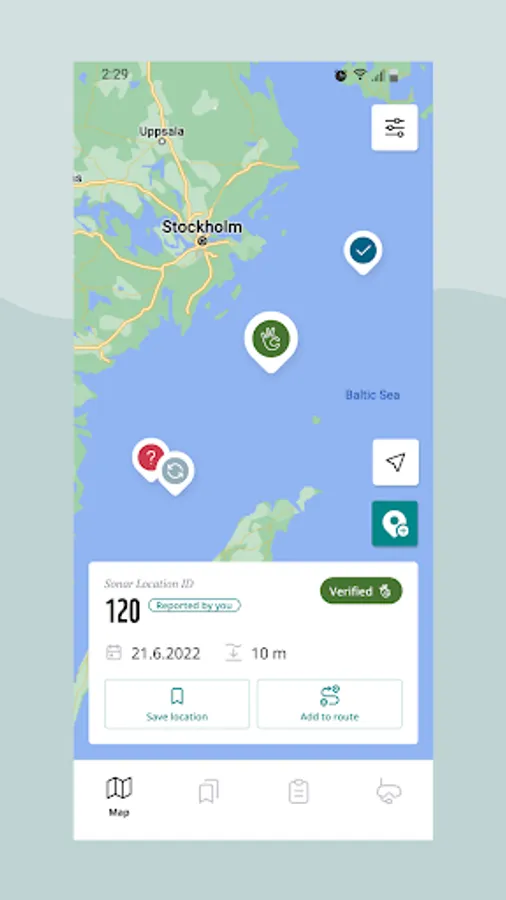 The app shows you potential ghost net locations on a map. These points were determined using a sonar device, which maps the seafloor. Save interesting points in the app and use the route function to plan your next dive. The routes can be exported as .gpx files.