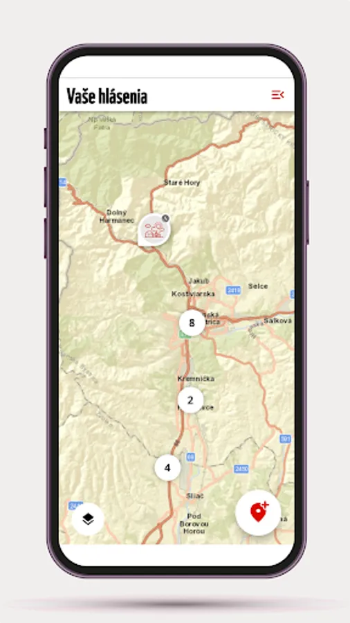Your reports: For registered users, the application will initially show a map with all the reports that the given user has sent using the application. Unregistered users will see the map without messages.