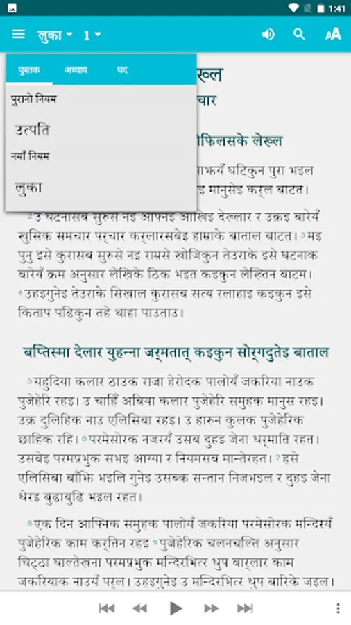 This app contains portions of the Bible in the Darai language, with the audio included. You can listen to the Scripture text being read aloud. For more Christian materials in the Darai language go to: Darai on https://nepalmatribhasha.org