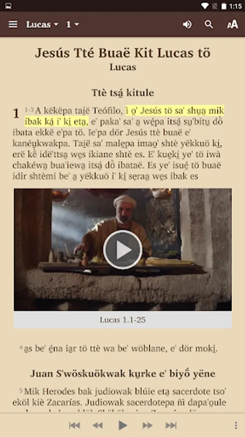 This app comes with audio and automatic text highlighting as the audio is played for books where audio is available. The app will download the audio from the web the first time the chapter is played. After that no further web connection is used or needed.