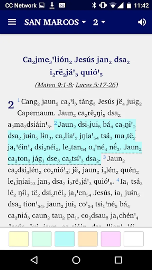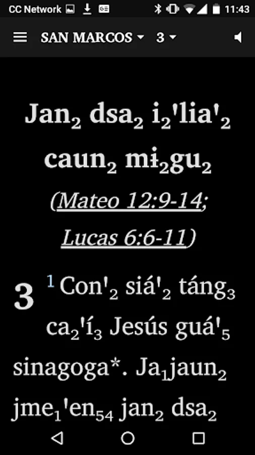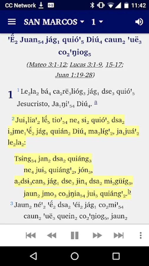 This app comes with audio and automatic text highlighting as the audio is played for books where audio is available. The Gospel of Mark audio is included in the initial installation. The audio for the other books will be downloaded from the web the first time the chapter is played. Internet provider data use charges may apply for downloading audio or watching linked videos.