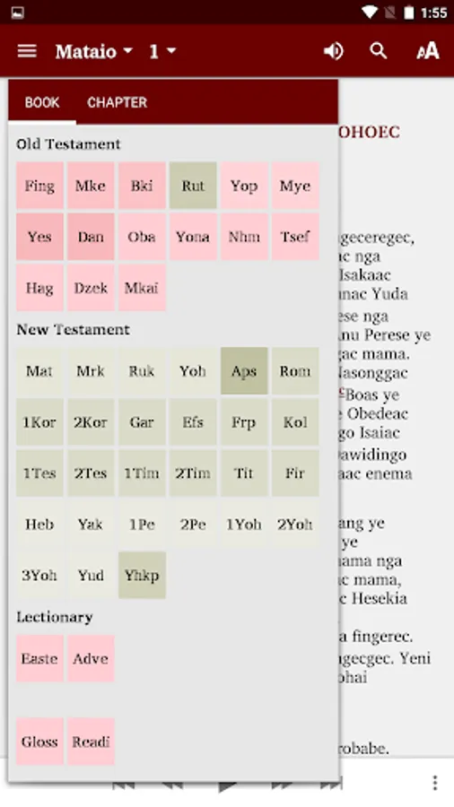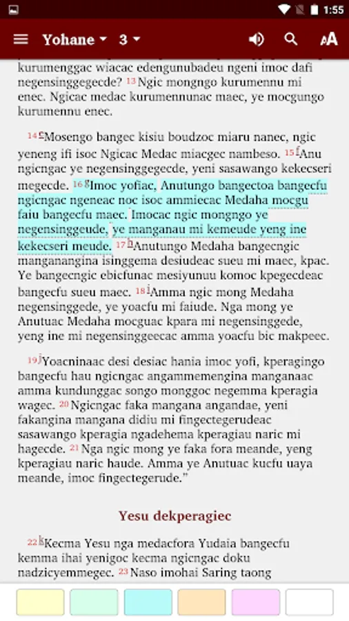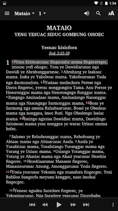 This app comes with audio and automatic text highlighting as the audio is played for books where audio is available. The app will download the audio from the web the first time the chapter is played. After that no further web connection is used or needed.