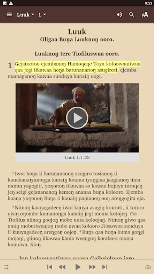 This app comes with audio and automatic text highlighting as the audio is played for books where audio is available. The app will download the audio from the web the first time the chapter is played. After that no further web connection is used or needed.