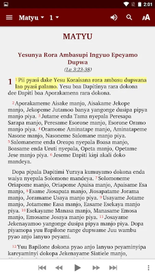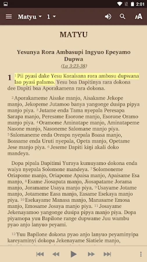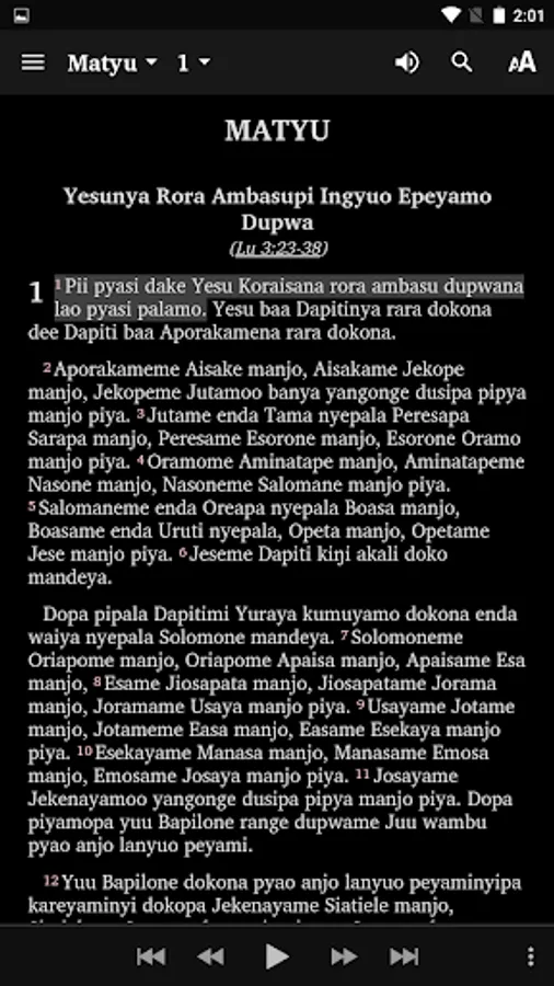 Audio: ℗ 2011, Hosanna: (www.bible.is/KYCPNG/Matt/1/D)