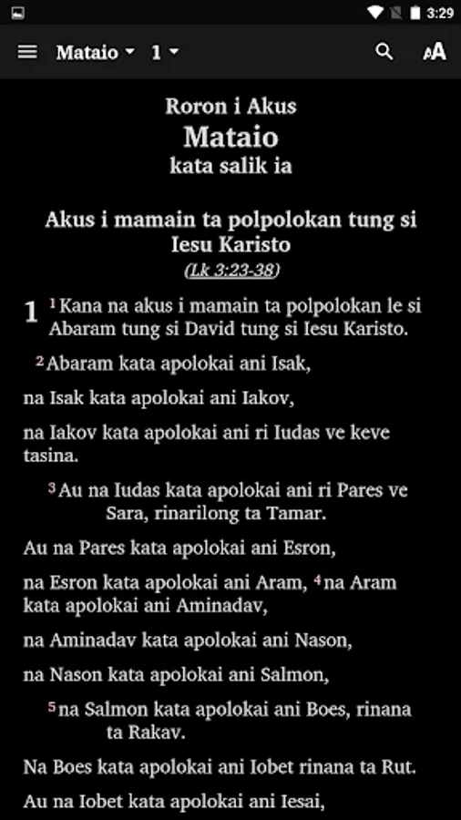 Genesis, Ruth, Jonah, and the New Testament in the Tungag language of Papua New Guinea.