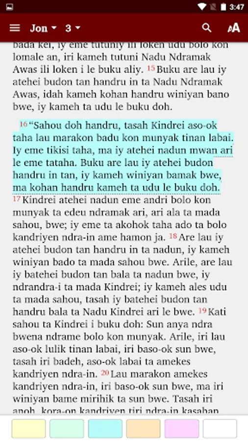 Genesis, Ruth, Jonah, and the New Testament in the Nyndrou language of Papua New Guinea.