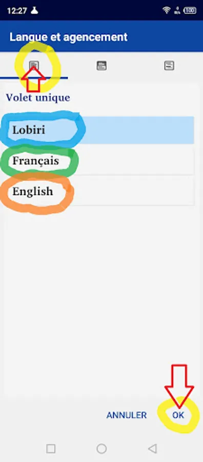 - "two panes" to display the Lobiri at the top and the French or English version at the bottom