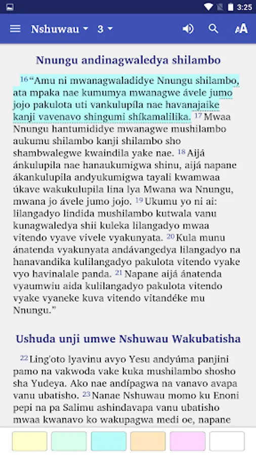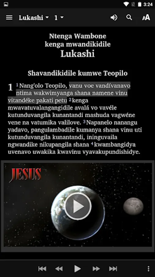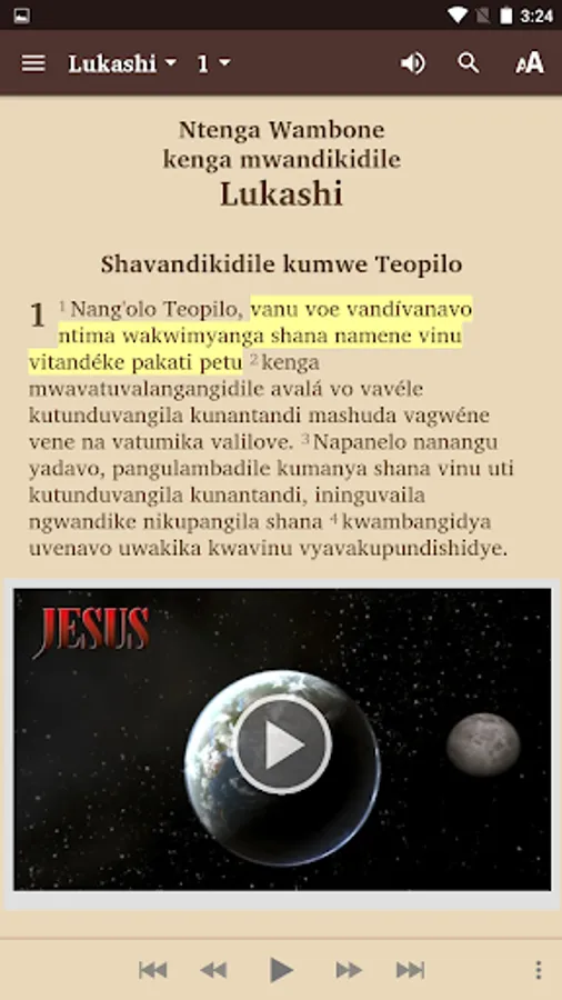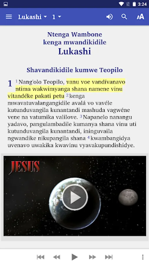 This app comes with audio and automatic text highlighting as the audio is played for books where audio is available. The app will download the audio from the web the first time the chapter is played. After that no further web connection is used or needed.