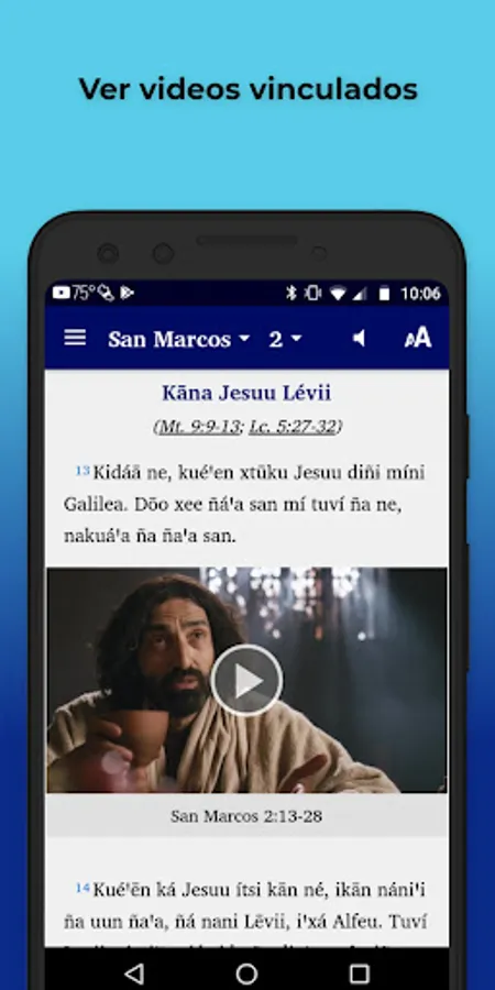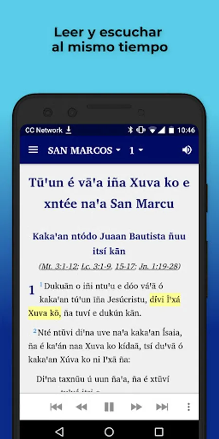 This app comes with audio and automatic text highlighting as the audio is played for books where audio is available. The Gospel of Mark audio is included in the initial installation. The audio for the other books will be downloaded from the web the first time the chapter is played. Internet provider data use charges may apply for downloading audio or watching linked videos.