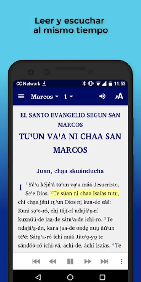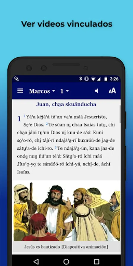This app comes with audio and automatic text highlighting as the audio is played for the books of Mark and 1 John. Internet provider data use charges may apply for watching linked videos.