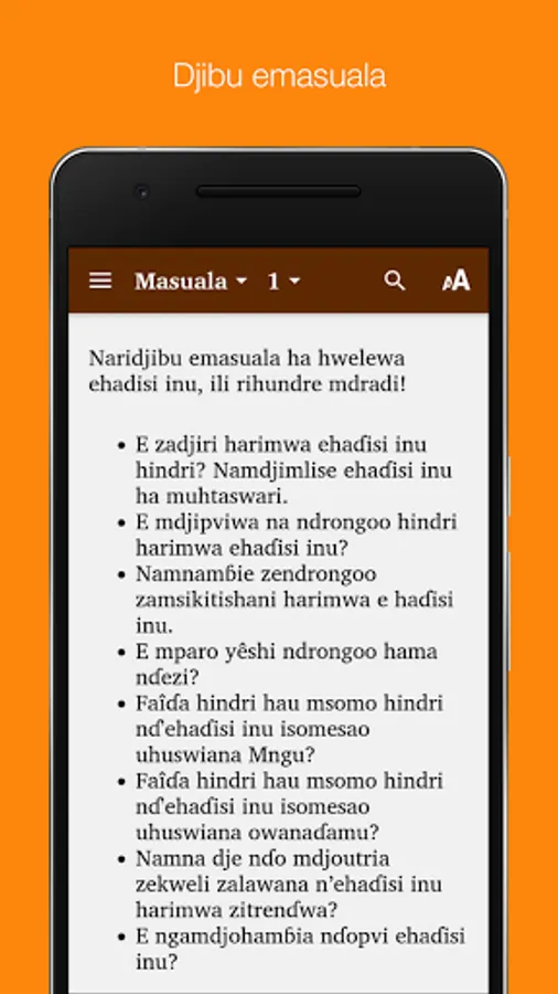 It’s a very interesting story! Read and listen to the tale of Mtrume Musa in Taurat in shiNgazidja. The audio follows the text sentence by sentence for easy understanding. One can use this application offline. You can download very quickly and transfer the app to your friends by SHAREit or Bluetooth. You can download other Tales of the Prophets app like Mtrume Adamu and Mtrume Ibrahim.
