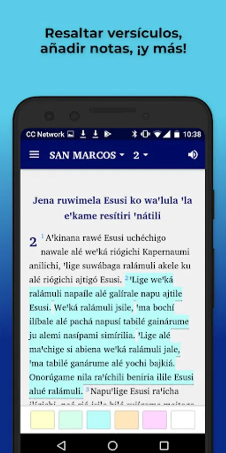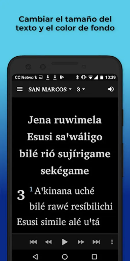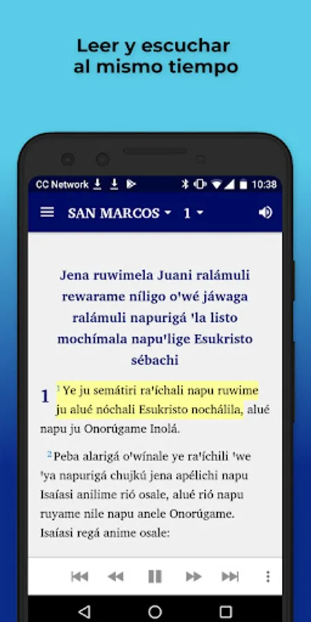 This app comes with audio and automatic text highlighting as the audio is played for books where audio is available. The Gospel of Mark audio is included in the initial installation. The audio for the other books will be downloaded from the web the first time the chapter is played. Internet provider data use charges may apply for downloading audio or watching linked videos.