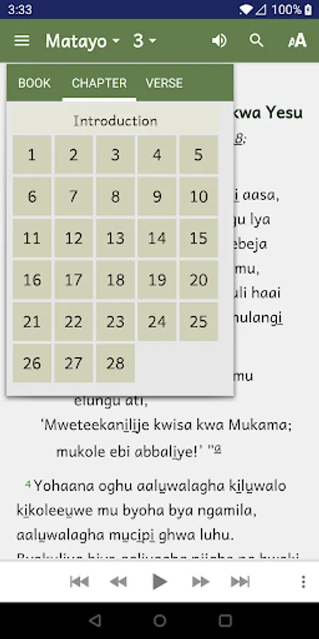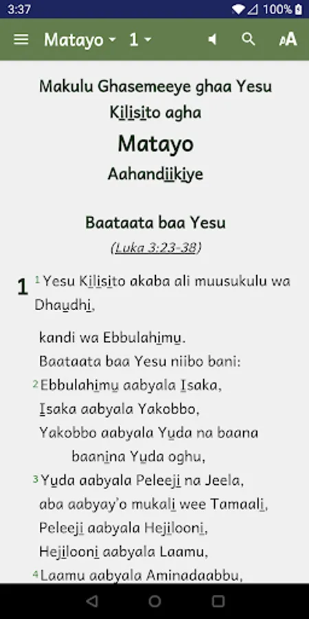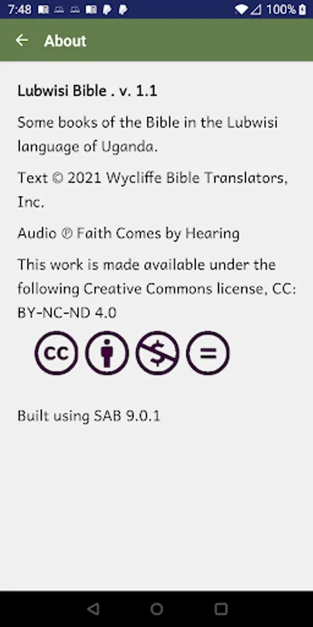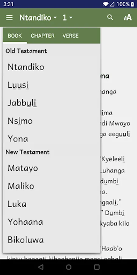 The Lubwisi Bible app includes the New Testament and some books from the Old Testament. Additional books will be added as they become available.