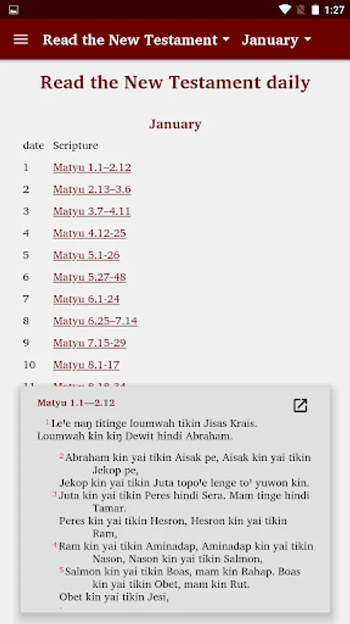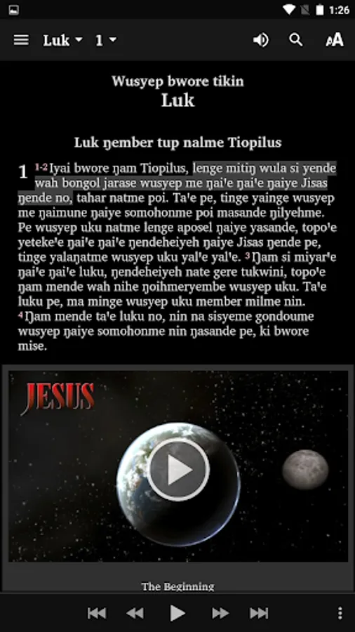 Audio: ℗ 2019, Hosanna: (https://live.bible.is/bible/URTWBT/MAT/1)