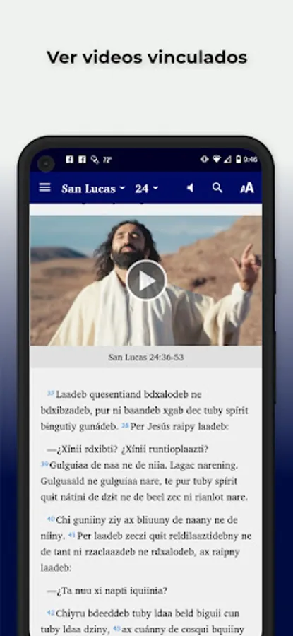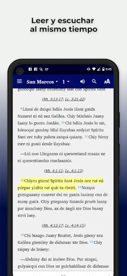 This app comes with audio and automatic text highlighting as the audio is played for books where audio is available. The Gospel of Mark audio is included in the intial installation. The audio for the other books will be downloaded from the web the first time the chapter is played. Internet provider data use charges may apply for downloading audio or watching linked videos.