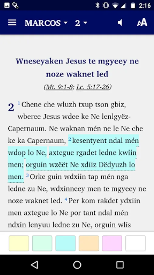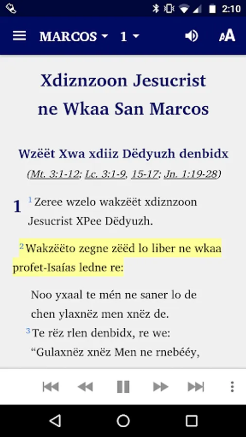 This app comes with audio and automatic text highlighting as the audio is played for books where audio is available. The Gospel of Mark audio is included in the intial installation. The audio for the other books will be downloaded from the web the first time the chapter is played. Internet provider data use charges may apply for downloading audio or watching linked videos.