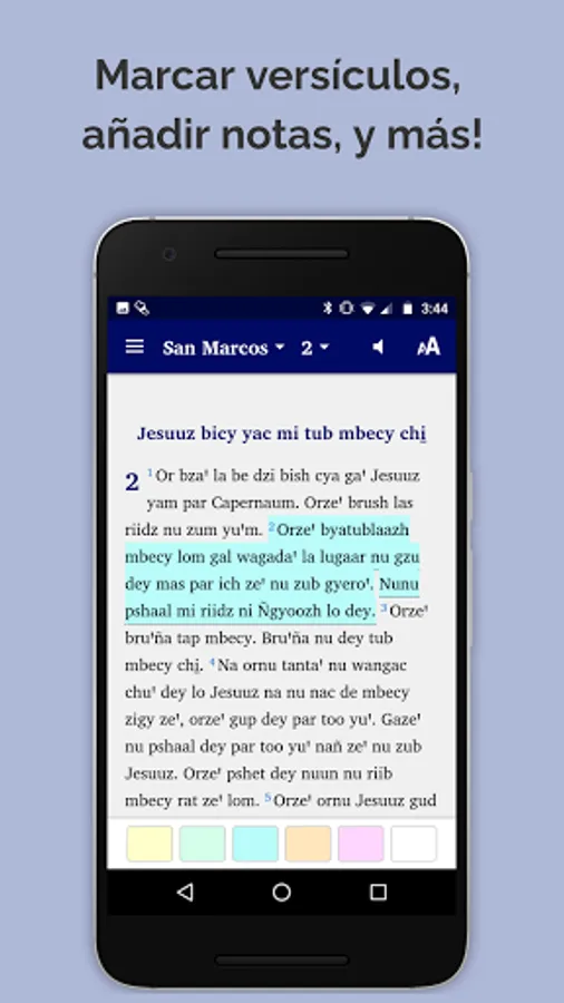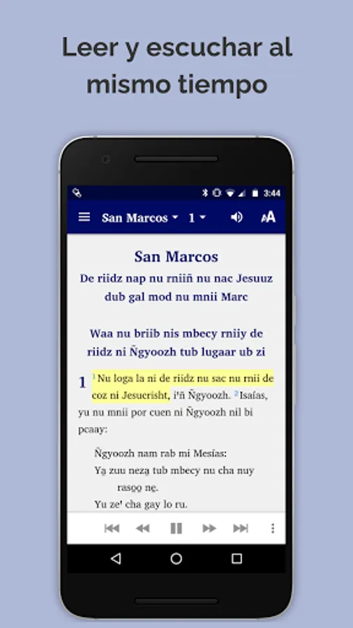 This app comes with audio and automatic text highlighting as the audio is played for books where audio is available. The Gospel of Mark audio is included in the intial installation. The audio for the other books will be downloaded from the web the first time the chapter is played. Internet provider data use charges may apply for downloading audio or watching linked videos.