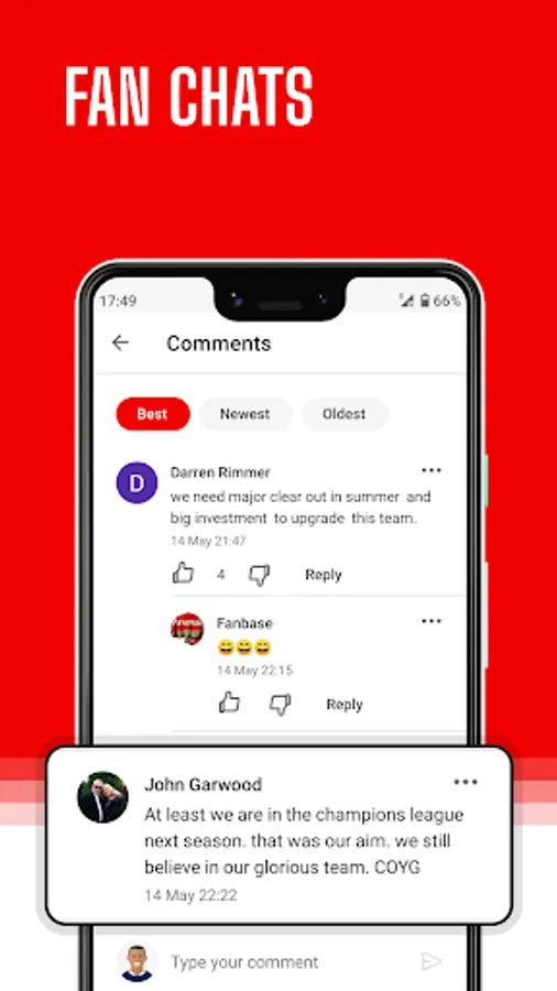 ✔ Big fan community. Join chat rooms with hot discussions, comments and polls.