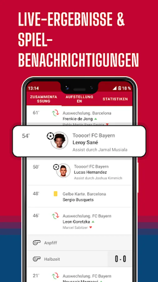 ✔ Match updates with live scores and results - straight from the Allianz Arena.