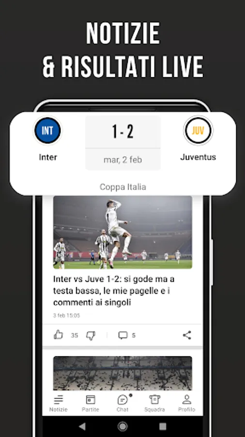 ✔ Grande community dei tifosi. Discussioni calde sotto ogni notizia o all'interno delle chat delle partite separate ti aspettano.