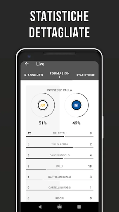 ✔ Statistiche dettagliate di squadre e giocatori.
