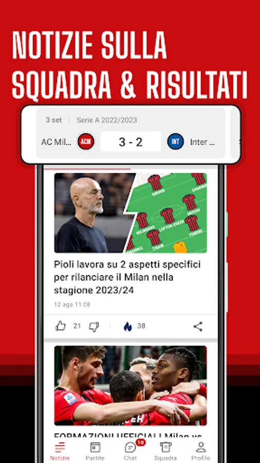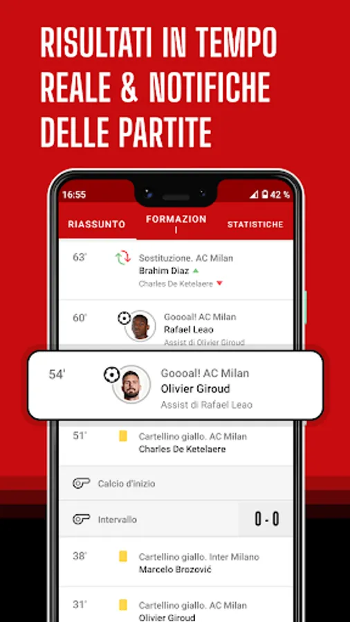 Get everything about AC Milan in an instant! From the latest news to the best editorial articles, from LIVE match commentary, to the match schedule, from results to goal notifications – all the important information for a true AC Milan fan!