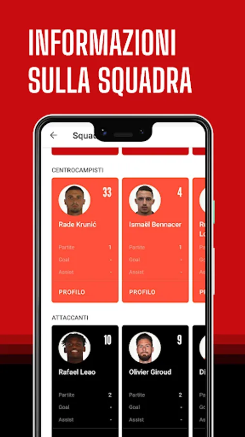 Our football app is free, as fast as Rafael Leão and will allow you to support the team wherever you go.