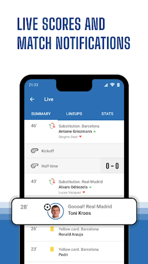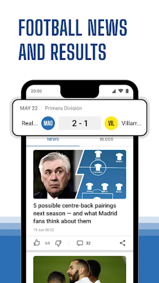 ✔ Match updates, live scores and results — directly from Santiago Bernabeu.