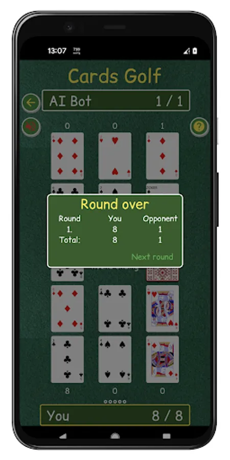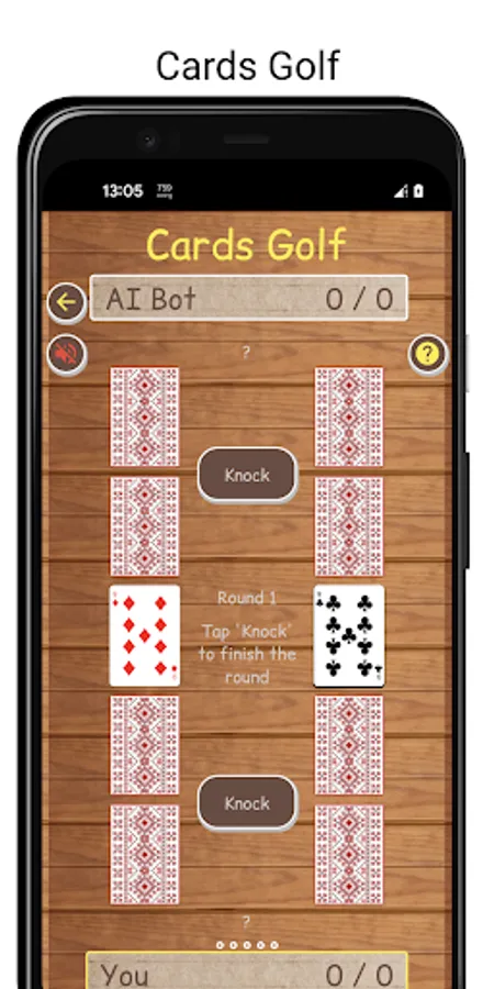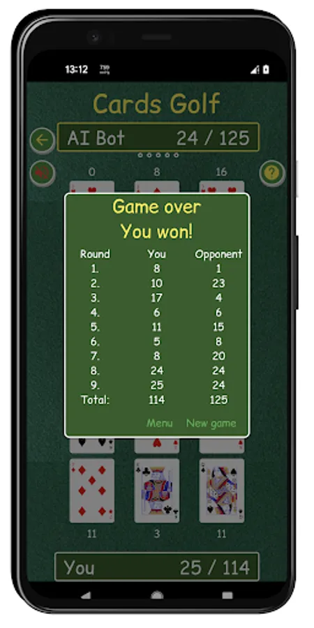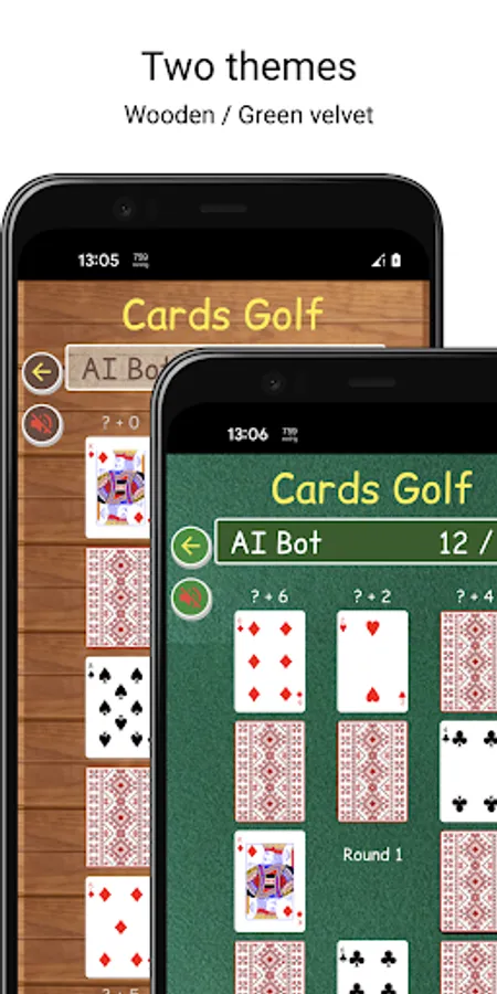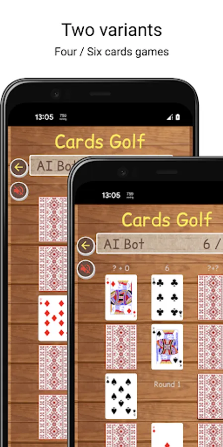 This app contains three card games: Four cards golf, Six cards golf, Scat. You can select a desired game from the Settings.