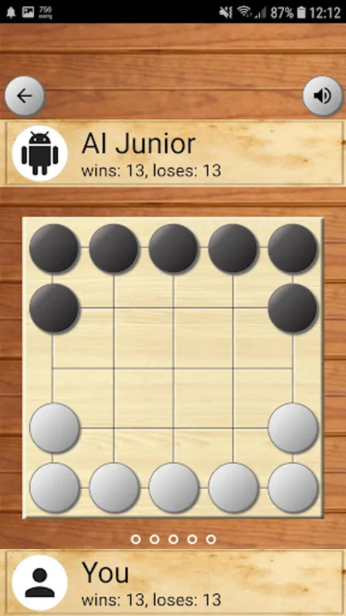 Five Field Kono(오밭고누) is a Korean abstract strategy game. As in Chinese checkers or Halma, a player wins by moving all of their pieces into the starting locations of their opponent's pieces.