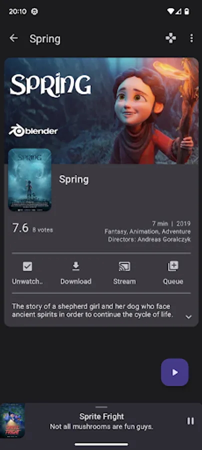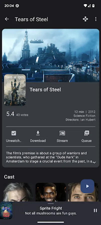 - Start playback or queue a media item on Kodi, stream or download an item to your local device;