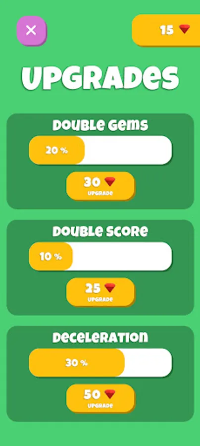 Collect precious gems during your run to unlock new skins and upgrades. Double gems for faster progress and maxed-out skills. Activate the slow motion upgrade when the speed gets overwhelming, breeze through the most challenging sections. Use the double score upgrade to maximize your high score and climb to the top of the leaderboard.