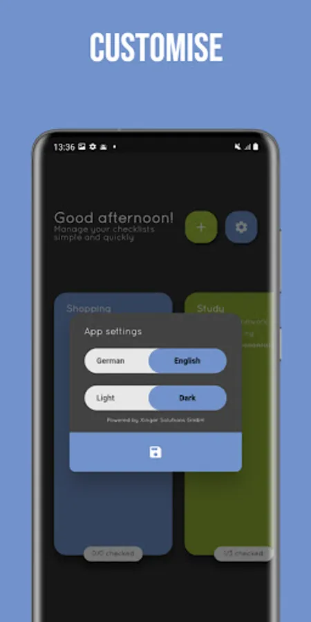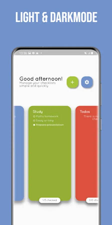 Share your lists with friends without registration and choose from various background colors and a dark or light mode. Pin important lists and tasks to have them always in view.