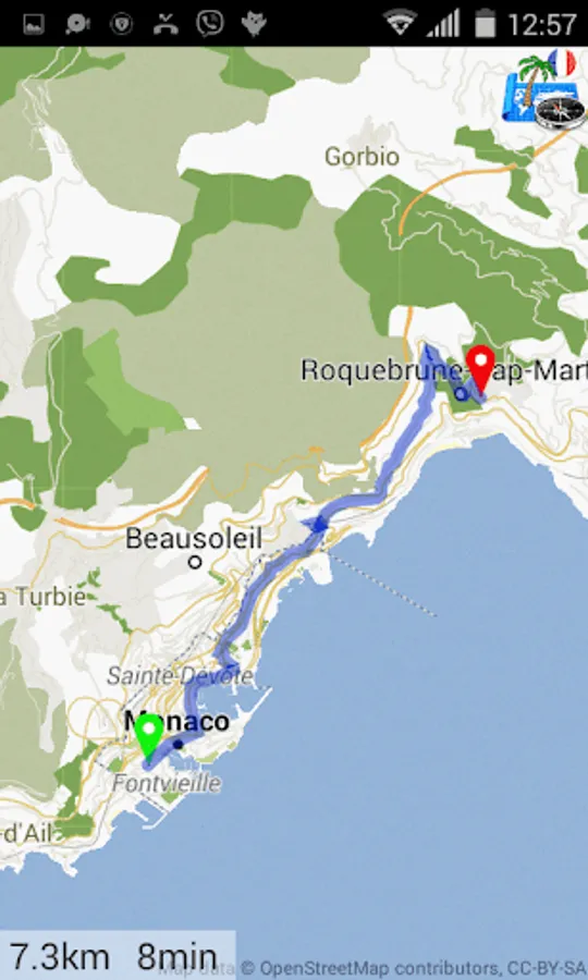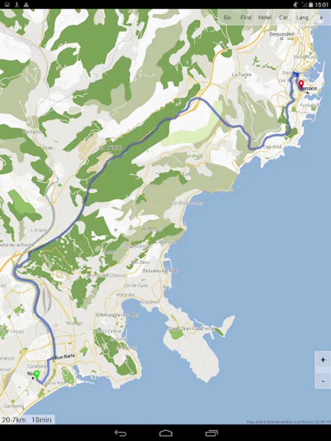 Download the whole French Riviera (Cote d'Azur) for navigation without internet connection. Free GPS app for Android.