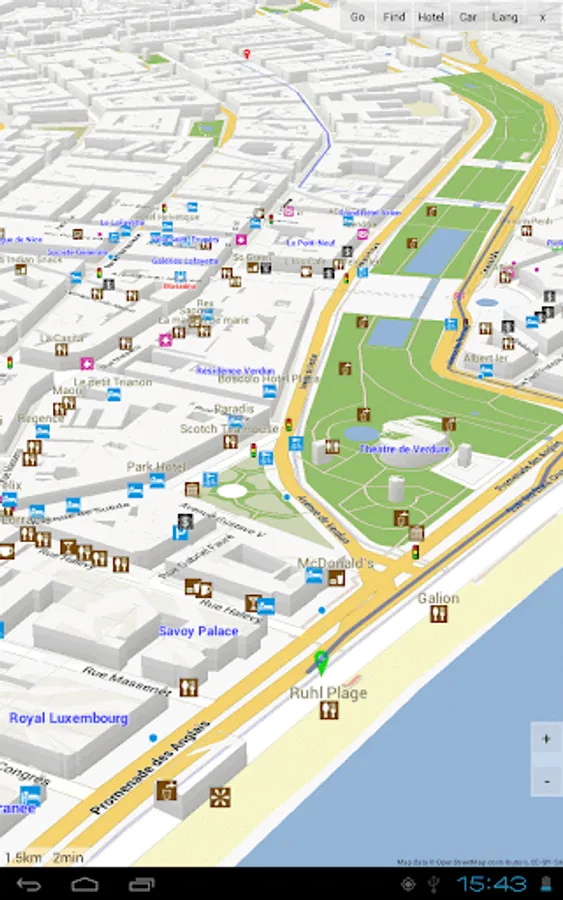 - Detailed 3D/2D maps of all roads in French Riviera with street addresses.