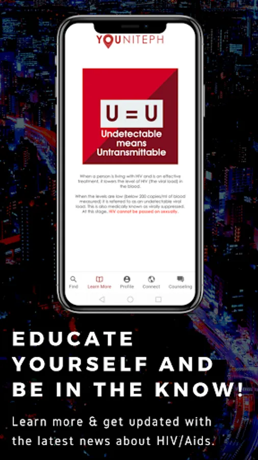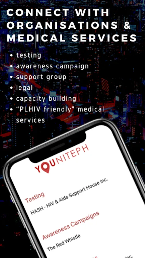 YOUnitePH is a FREE location-based mobile app that provides updated information & news about HIV/Aids. It also direct users to the nearest treatment hubs, testing centers & private clinics.