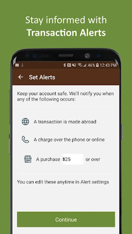 • Set up and manage your account alerts to help you monitor your account activity