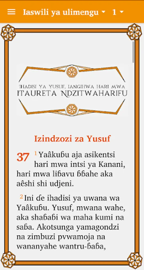 It’s a very interesting story! It's only 40 MB! You can download very quickly and transfer the app to your friends with SHAREit or Bluetooth. It is not necessary to log in to use this application. It can be used offline. Audio follows the text sentence by sentence to make it easier to learn how to read and write Comorian! Expect for other tales of the prophets in Taurat in a few weeks. The tales of the Musa and Yaâkuɓu will follow soon!