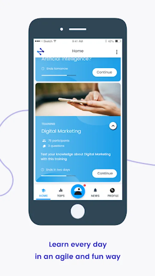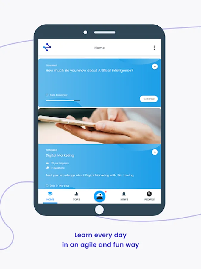 Noo!! You'll be learning in exactly the same way as a child does, playing and doing - because that's the best way to learn! You'll train by answering both my questions and the questions of other people in your company or organisation. Bit by bit, you'll gain knowledge and points and you'll move up the ranking, converting yourself into an expert!