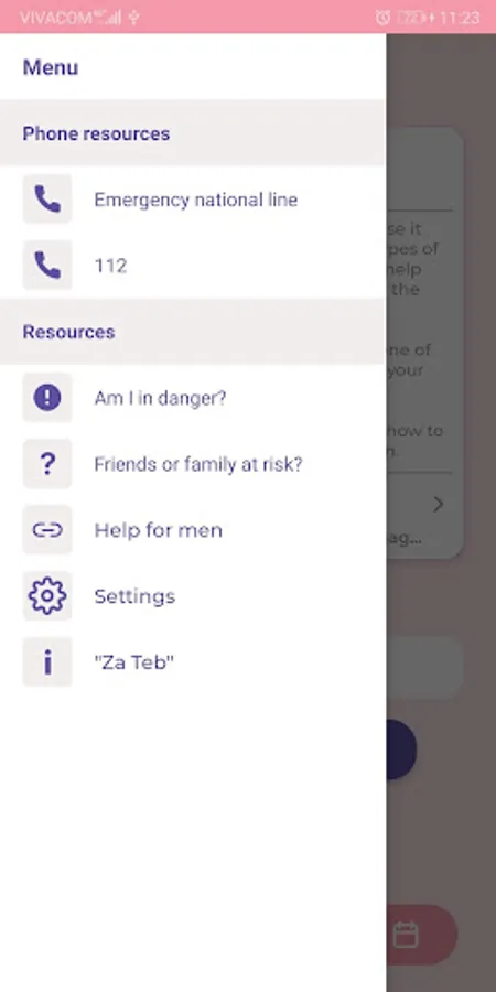 - National, 24 hours help lines, as well as a quick call button of national 112 phone