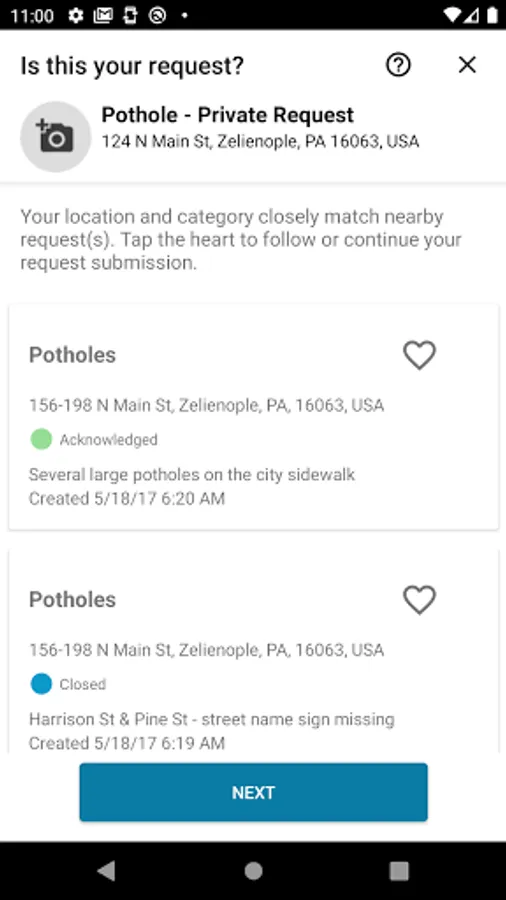 The Zelienople free mobile app lets Zelienople Borough, Pennsylvania residents and visitors access information and improve their community by reporting non-emergency issues that need attention within the Borough of Zelienople and monitor the progress of the work. You can report an issue and find information about the Borough of Zelienople all from your mobile device in just a few taps making engaging with the Borough of Zelienople, Pennsylvania, quick and easy! Want to report a pothole, damaged street sign, graffiti, or other local issue to Zelienople Borough while on the go? Non-Emergency issues can be reported as soon as they are discovered making reporting a problem easier than ever. Powered by SeeClickFix, the app uses GPS to recognize the exact location of the issue being reported and provides a list of common quality-of-life conditions to select from. Photos and videos can be uploaded to accompany your request, which helps the Borough quickly identify the problem. Requests are automatically routed to Borough departments for resolution. You may also track the status of requests submitted by you or other members of the community and follow the issue from the time it is reported until it is resolved. Emergency utility and public safety items must still be reported directly to 911 and other listed emergency phone numbers to insure they are handled quickly and promptly.