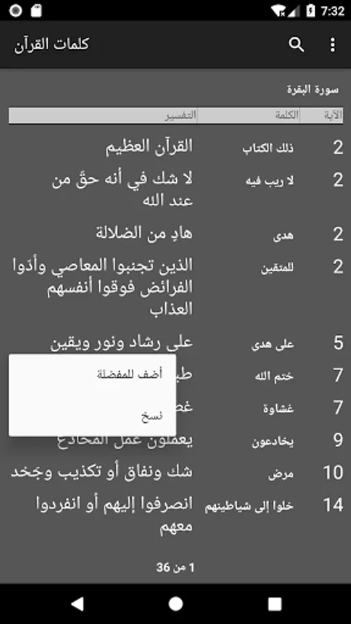 * يمكن البحث في الكلمات الواردة بالتفسير أو تصفح الكتاب.