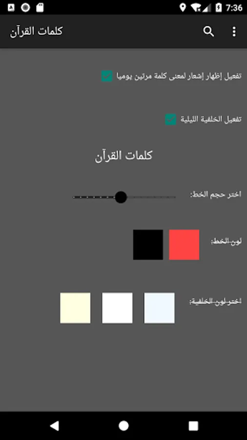 * يمكن تكبير الخط من خلال الضغط على الشاشة مرتين (double tap).