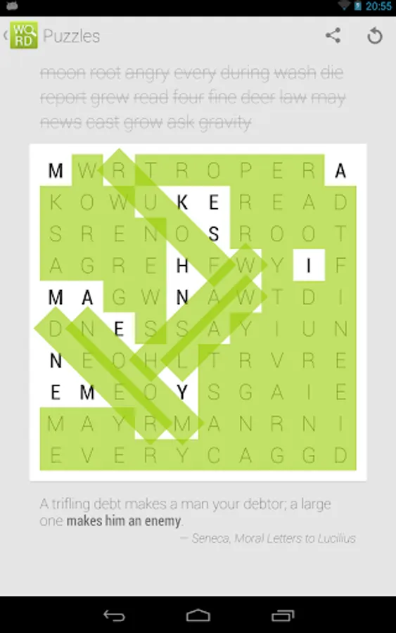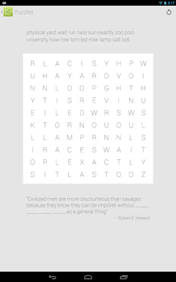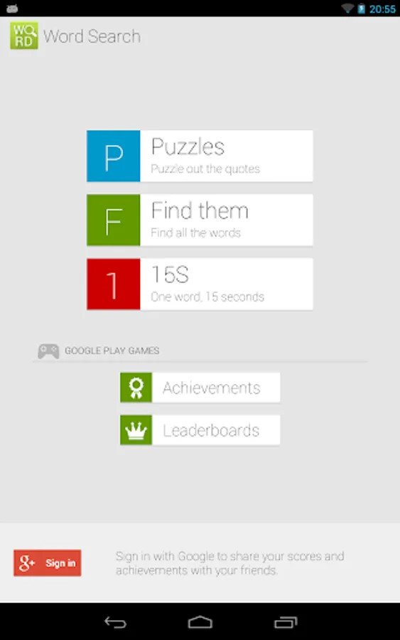 Word Search is a word puzzle game where you search for words hidden in the letter grid.