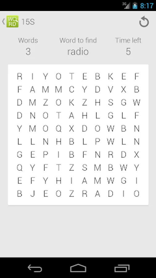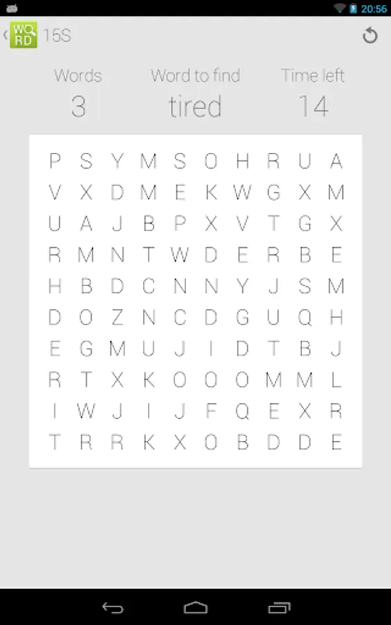 The final mode presents you with a word and gives you 15 seconds to locate it in the puzzle. If you run out of time, the game is over.