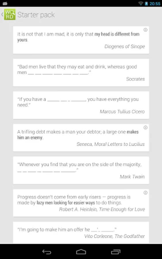 Packed with more than 100 crossword puzzles with quotes by writers or ancient philosophers.